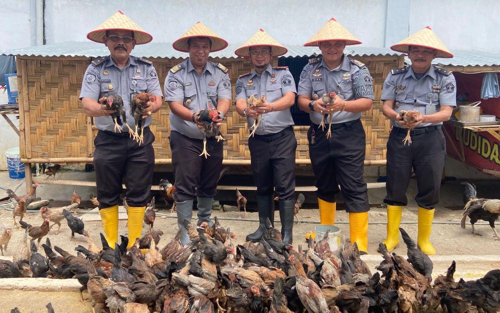 Selanjutnya Kalapas memantau perkembangan peternakan Ayam Kampung sekaligus memberikan pakan ayam bersama pejabat struktural lainnya.