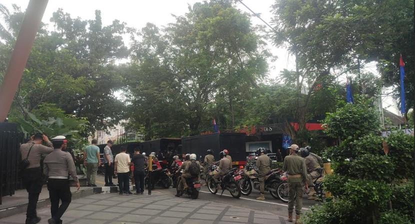 Pantauan tribun, mobil Barakuda terparkir di depan lokasi debat. Petugas kepolisian telah berjaga jaga sejak tadi. Satpol PP hingga prajurit TNI juga membantu pengamanan di sana.