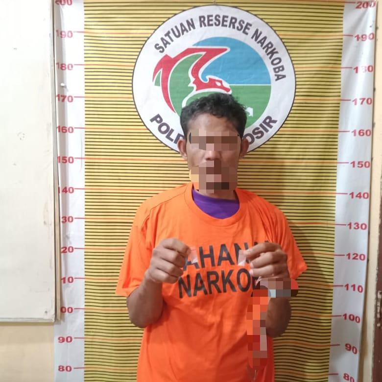 Terduga pelaku berinisial PG (37) diamankan bersama barang bukti dua paket sabu oleh tim Polsek Simanindo di Desa Pardomuan, perbatasan antara Kecam