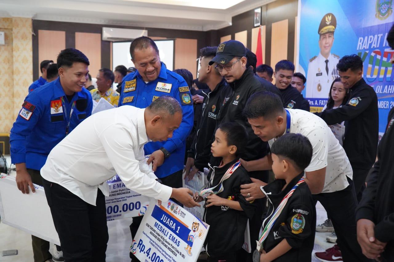 Kegiatan ini pun dihadiri langsung oleh Ketua Umum KORMI Nasional, Hayono Isman,Ketua KORMI Sumut Baharuddin Siagian dan Kadispora Sumut Mahfullah Daulay.