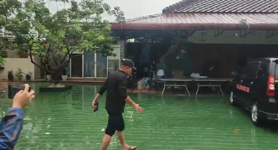Edy terlihat masih berpakaian rumahan dengan celana tergulung usai memantau banjir tiba di rumah Karya Bakti, Medan Johor, Rabu (27/11 /2024).