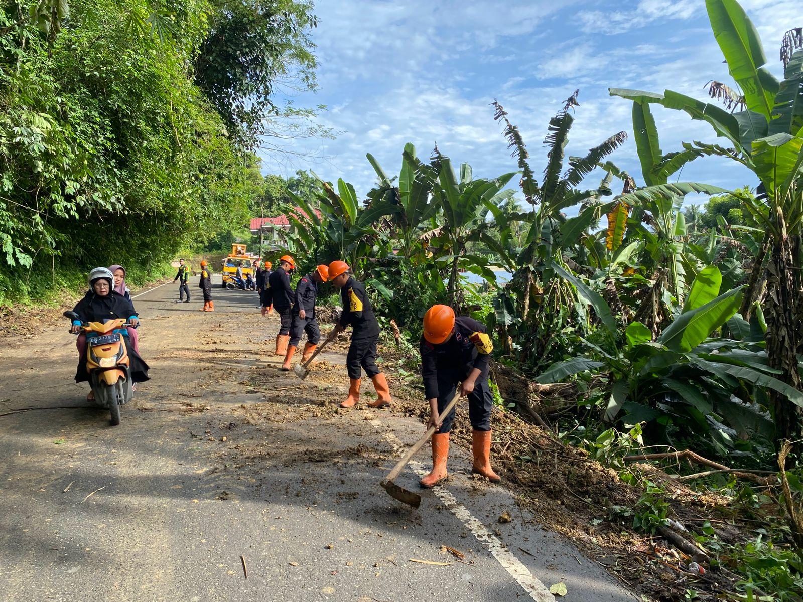 Aksi cepat dan tanggap dari Personel Kompi 4 Batalyon C Pelopor Satuan Brimob Polda Sumut berhasil mengatasi permasalahan tanah longsor dan pohon tumb