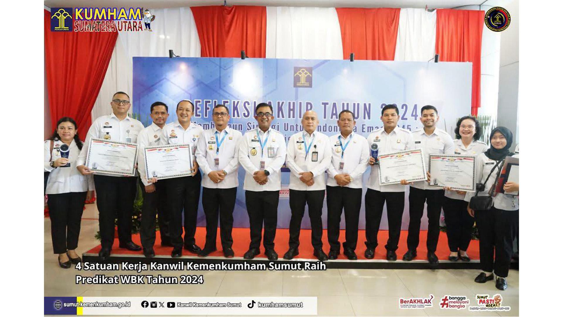 4 satuan kerja di bawah naungan Kantor Wilayah Kementerian Hukum dan HAM Sumatera Utara berhasil meraih predikat Wilayah WBK pada tahun 2024.