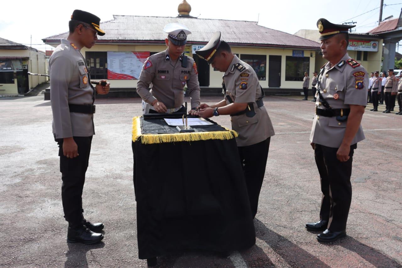 "Saya ucapkan selamat datang dan saya perintahkan untuk segera menyesuaikan diri dan kuasai situasi, kondisi dan perkembangan yang terjadi di tempat tugas yang baru serta jaga Kekondusifan sehingga tercapai tugas tugas yang saudara kerjakan, Kenali lingkungan, Bawahan serta dapat berkoordinasi dalam pelaksanaan tugas sehari hari dengan fungsi kepolisian lainnya yang ada di Polres dan Polsek maupun dengan instansi terkait, " tutupnya.