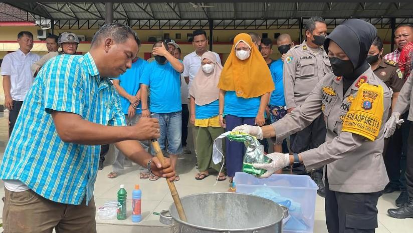 Polresta Deli Serdang kembalikan melakukan pemusnahan barang bukti narkotika berbagai jenis, Selasa (17/12/2024).