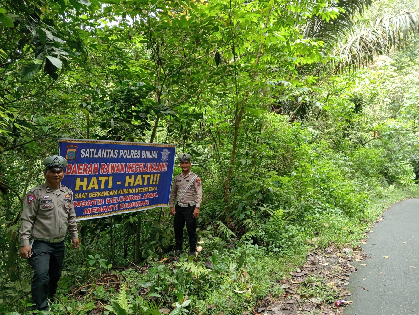 Jelang Libur Nataru Sat Lantas Polres Binjai Pasang Spanduk Rawan Kecelakaan, Ini Titik-titiknya