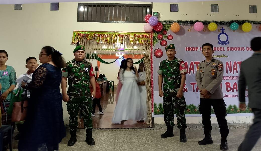 Polres Padanglawas Kapolsek Barumun Tengah Iptu Elimawan Sitorus SH MH bersama dengan personil melaksanakan Pengamanan Natal di Gereja HKBP Immanuel