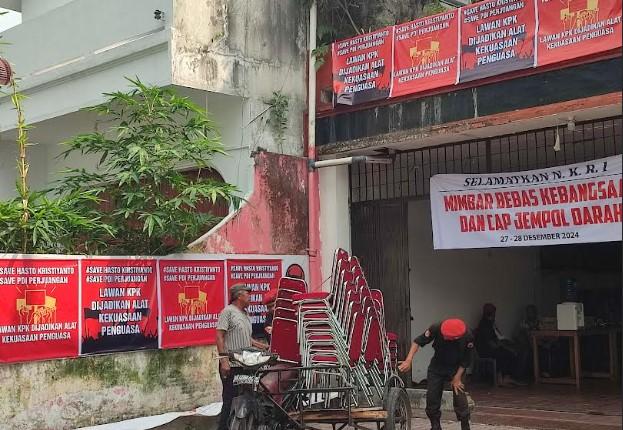 Spanduk Save Hasto dan Lawan KPK Jadi Alat Penguasa Ditempel di Kantor PDIP Sumut