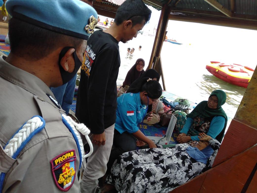Pos Pelayanan Parbaba Polres Samosir Bantu Wisatawan yang Sakit di Pantai Pasir Putih Parbaba