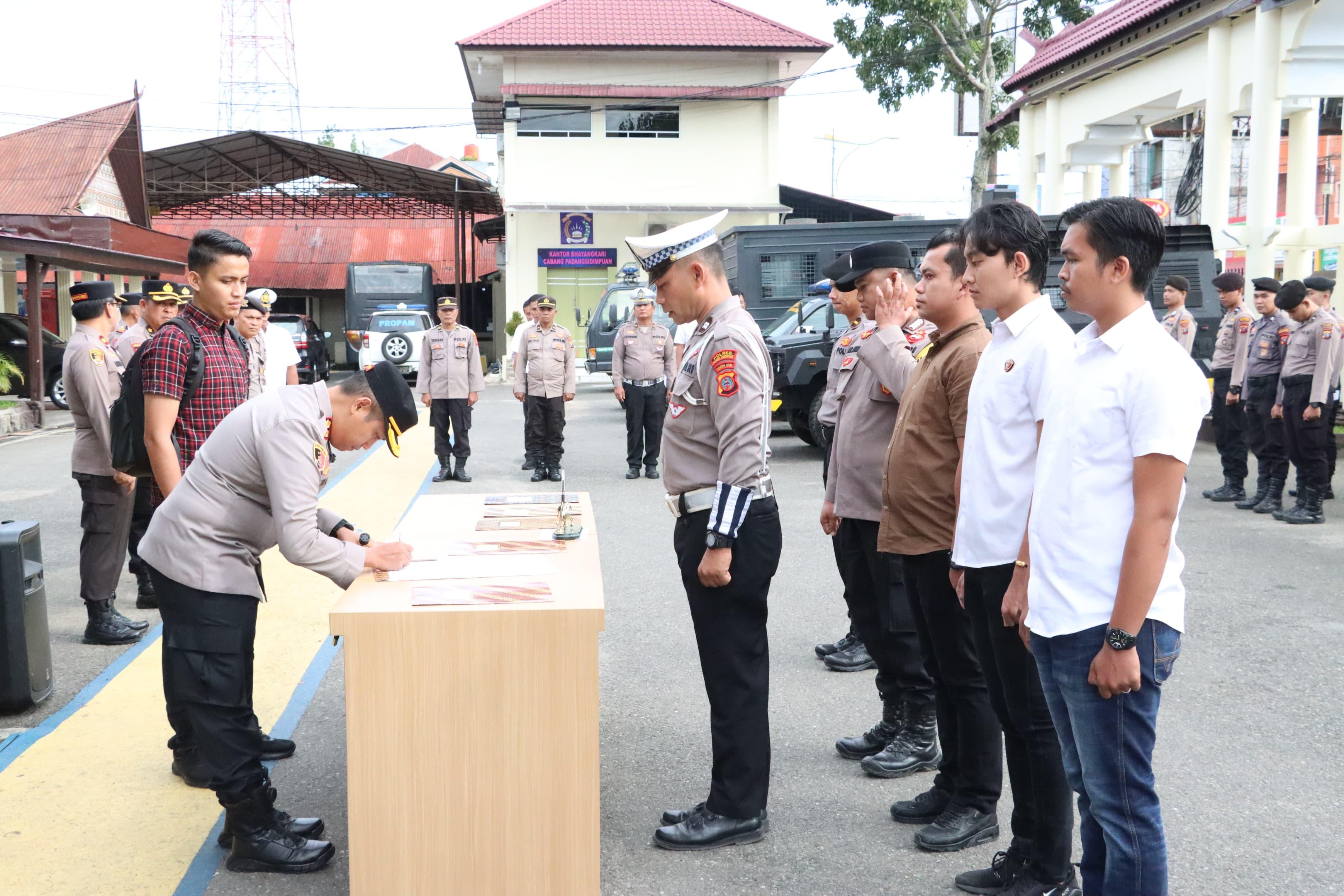 Dalam apel yang dipimpin langsung oleh Kapolres Padangsidimpuan, AKBP Dr. Wira Prayatna, S.H., S.I.K., M.H., seluruh personel menandatangani pakta integritas yang berisi komitmen untuk patuh pada hukum, menjunjung tinggi kode etik Polri, dan secara aktif terlibat dalam upaya pemberantasan narkoba.