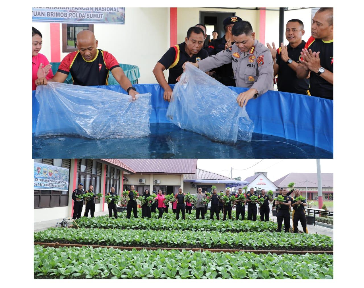 Peningkatan Pangan Sat Brimob Polda Sumut Sukses Panen Sayuran, Tabur 8000 Benih Lele dan 5000 Nila