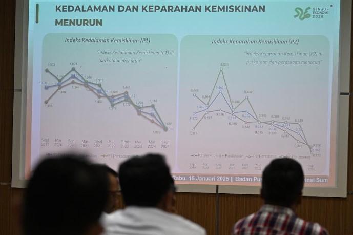 TRIBUN-MEDAN.com, MEDAN - Badan Pusat Statistik (BPS) Provinsi Sumatera Utara (Sumut) menyatakan jumlah penduduk miskin dan tingkat kemiskinan di Sumut mengalami penurunan drastis. Tercatat pada tahun 2024, tingkat penurunan kemiskinan di Sumut 10 kali lebih tinggi jika dibandingkan tahun sebelumnya pada Kamis (16/1/2025)