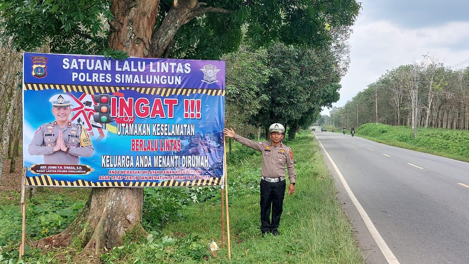 Satuan Lalu Lintas (Satlantas) Polres Simalungun melancarkan kampanye pencegahan kecelakaan lalu lintas melalui pemasangan baliho