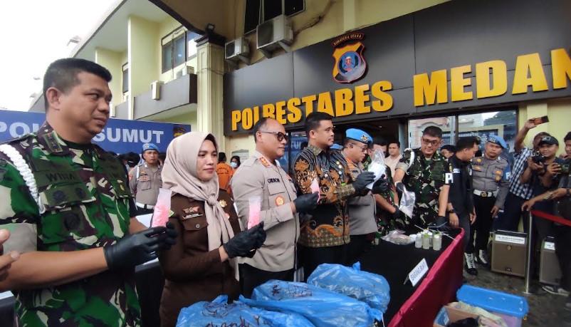 Polrestabes Medan dan Kodam I Bukit Barisan unjuk keberhasilan dalam penindakan narkoba di awal tahun 2025.