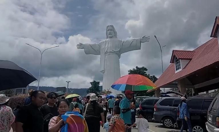 Patung Yesus di Sibeabea Ramai Dikunjungi Wisatawan Libur Imlek 2025