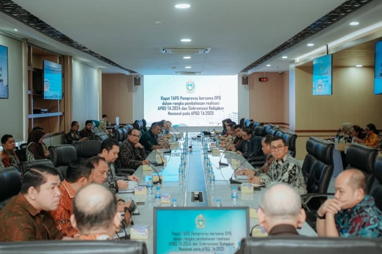 Rapat yang juga dalam rangka pembahasan realisasi APBD 2024 dan sinkronisasi kebijakan nasional pada APBD 2025 itu, dipimpin Pj Sekdaprov Sumut MA Effendy Pohan.