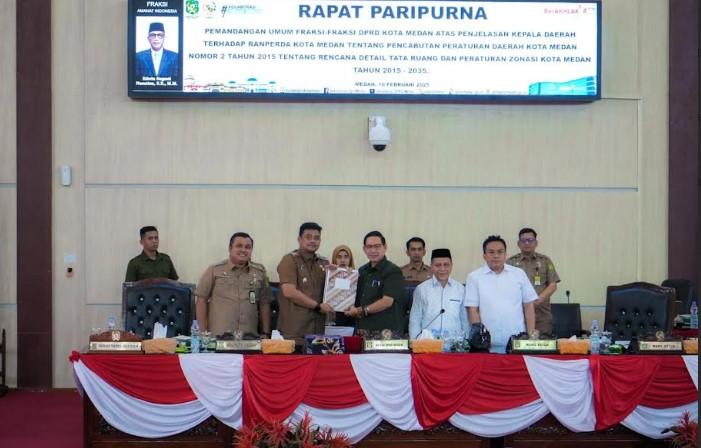 Terkait Ranperda Kota Medan tentang Pencabutan Perda Kota Medan Nomor 2 Tahun 2015 tentang Rencana Detail Tata Ruang dan Peraturan Zonasi Kota Medan Tahun 2015-2035 disambut baik oleh fraksi-fraksi DPRD Medan.