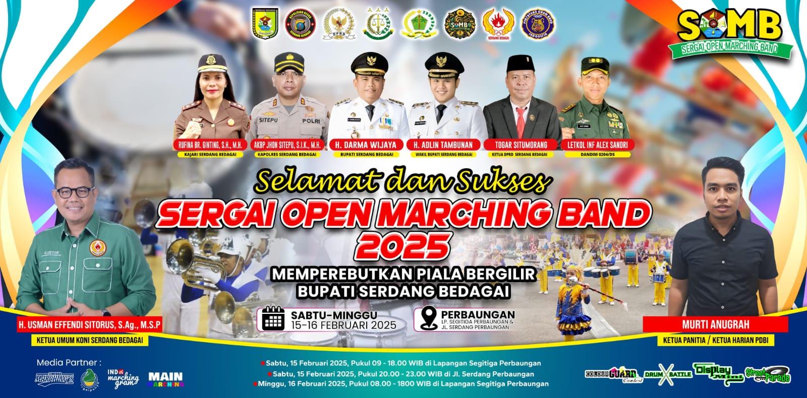 Sebuah flyer resmi telah dirilis untuk mengumumkan perhelatan Sergai Open Marching Band (SOMB) 2025, yang akan digelar di Kecamatan Perbaungan.