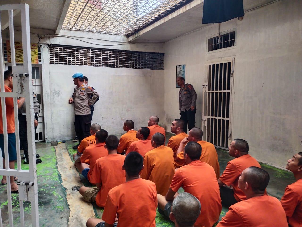 Wakapolres Pematangsiantar Kompol Hendrik Situmorang MM bersama jajaran saat mengecek kondisi ruang tahanan. Pemeriksaan dilakukan untuk memastikan