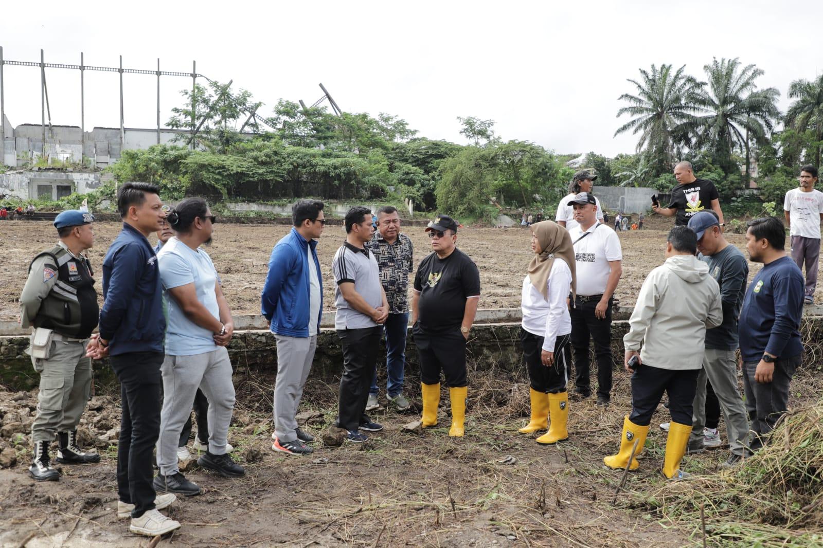 Didampingi sejumlah Organisasi Perangkat Daerah (OPD), Wakil Wali Kota Herlina dan Tim Suksesnya, Wali Kota Pematangsiantar Wesly Silalahi menunjukkan keseriusannya membenahi Stadion Sang Naualuh.