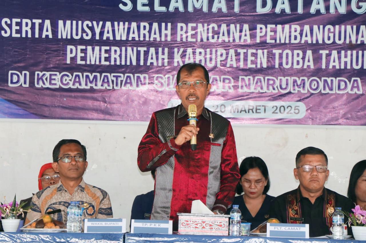TRIBUN-MEDAN.com, TOBA - Musyawarah Rencana Pembangunan (Musrenbang) Rencana Kerja Pembangunan (RKPD) Kabupaten Toba Tahun 2026 Kecamatan Siantar Narumonda yang membahas 64 usulan dari 14 desa digelar di Aula Kantor Camat Siantar Narumonda, Kamis (20/3/2025).