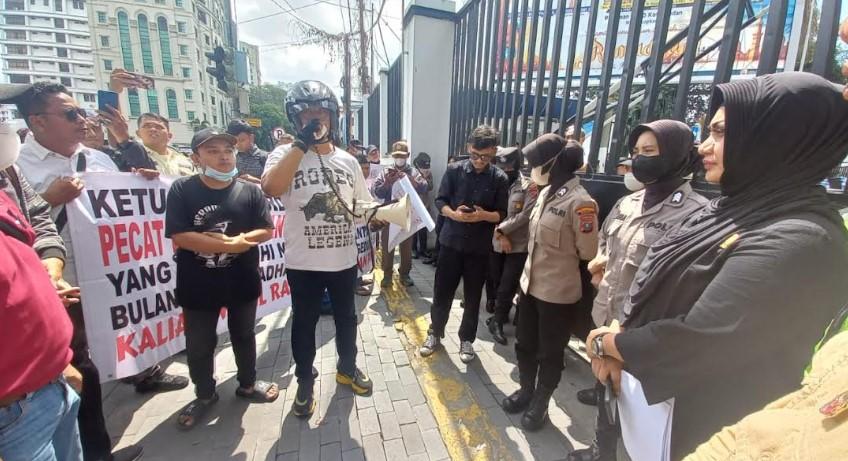 Puluhan Orang Demo, Desak Copot Dua Anggota DPRD Medan yang Berkelahi