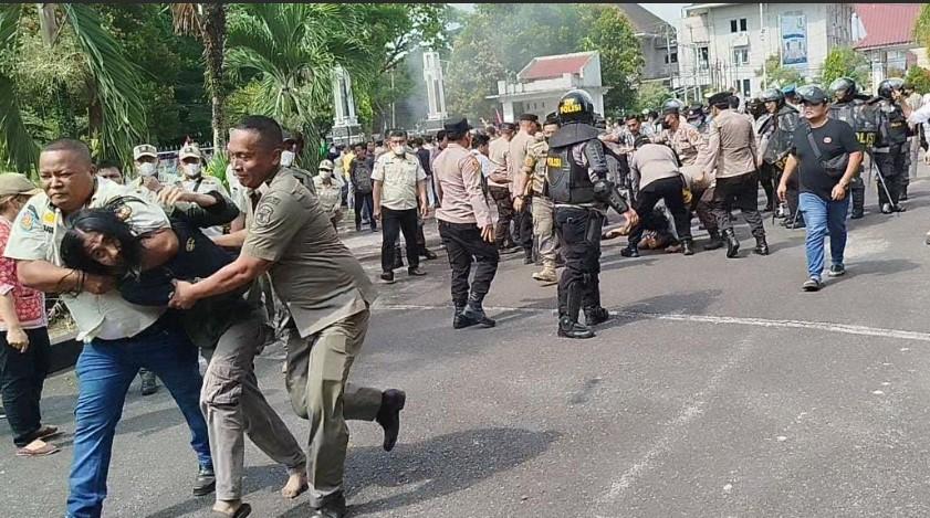 Dari kerumunan, polisi pun menarik tiga mahasiswa pendemo yang dianggap memberikan perlawanan kasar dan aksi provokatif yang berlebihan ke dalam Gedung DPRD Pematangsiantar.