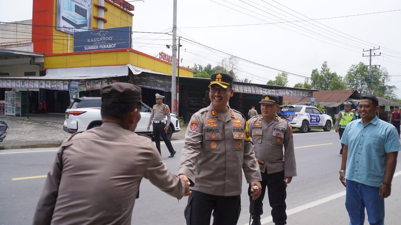 TRIBUN-MEDAN.COM, LANGKAT-Menjelang puncak arus mudik Lebaran 2025, Kapolres Langkat AKBP David Triyo Prasojo, SH, SIK, MSi, bersama Ketua Bhayangkari Cabang Langkat, Ny Ayu David, melakukan kunjungan ke sejumlah Pos Pelayanan (Pos Yan) di Kabupaten Langkat, Sabtu (29/3/2025).