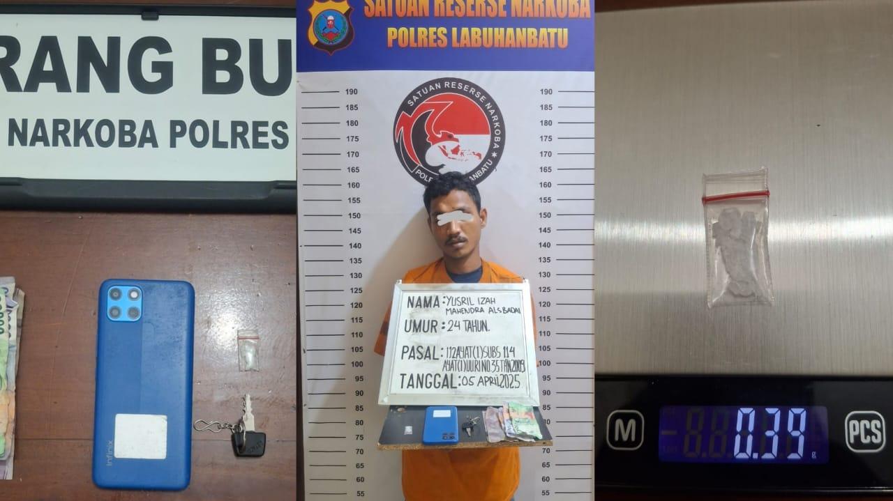 TRIBUN-MEDAN.COM, LABUHANBATU-Pada Sabtu malam, 5 April 2025, sekitar pukul 22.30 WIB, tim Opsnal Satres Narkoba Polres Labuhanbatu berhasil meringkus seorang pria berinisial Y-I-M alias Badai (24) di Jalan Al Ikhlas Gang Union, Kelurahan Rantauprapat, Kecamatan Rantau Utara, Kabupaten Labuhanbatu. Badai diringkus karena kedapatan menguasai narkotika jenis sabu-sabu yang akan dijual kembali.