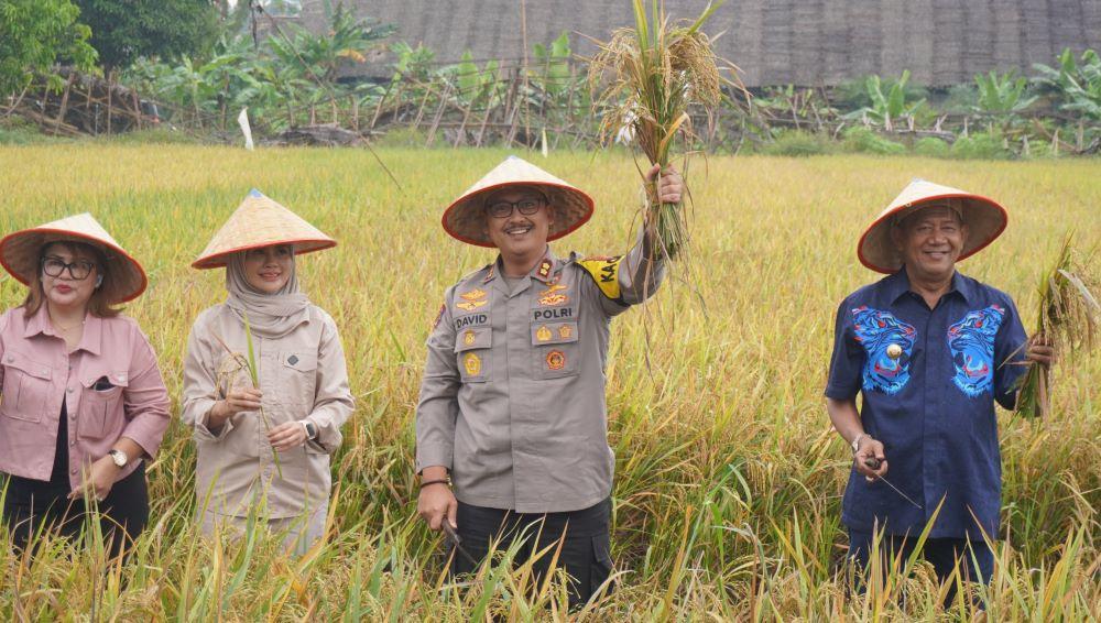 TRIBUN-MEDAN.com, LANGKAT - Kapolres Langkat, AKBP David Triyo Prasojo, SH, SIK, MSi., menghadiri kegiatan panen raya padi serentak yang dilaksanakan di areal persawahan Kelompok Tani Hinai Pasar VIII Baru, Kecamatan Hinai Kabupaten Langkat, Senin (07/04/2025) kemarin.