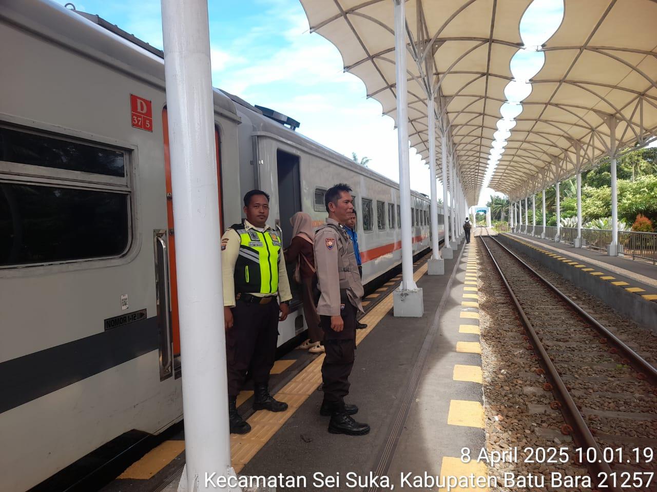 Personil Polsek Perdagangan Amankan Arus Balik Lebaran di Stasiun Bandar Tinggi, Simalungun