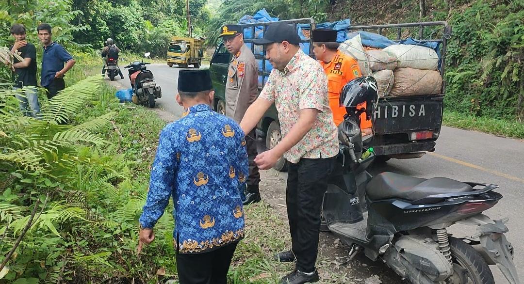 Bupati Pakpak Bharat, Franc Bernhard Tumangger bersama Kapolres Pakpak Bharat, AKBP Febriandi Haloho melihat langsung lokasi awal jatuhnya mobil Avanza bersama 3 penumpangnya.