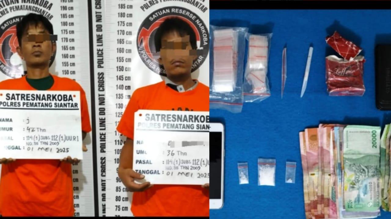 Satuan Reserse Narkoba Polres Pematangsiantar menangkap dua pria yang diduga sebagai pengedar narkotika jenis sabu