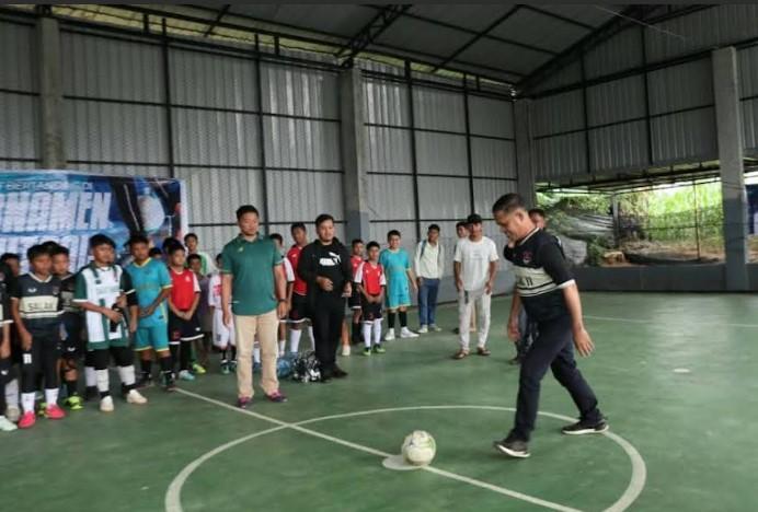 Kepala Desa Salak II, Sakat Banurea membuka turnamen futsal bagi anak - anak usia 13 dan 15 tahun di Gedung Ajangta Futsal.