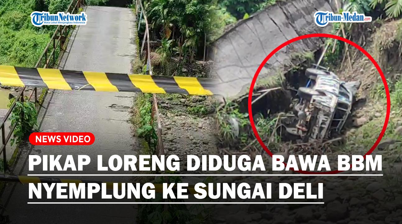 Mobil Pikap Bercorak Loreng Diduga Membawa BBM Nyemplung ke Sungai Deli, Jembatan di Namorambe Putus