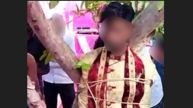 Viral calon pengantin pria diikat ke pohon pada hari pernikahannya. Ia diikat karena diduga meminta tambahan mahar sebelum upacara pernikahan dimulai.