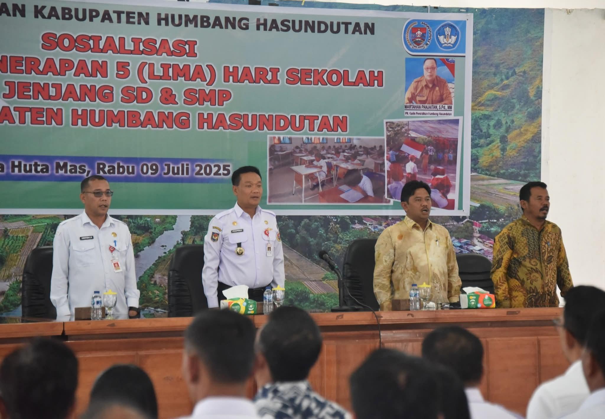 TRIBUN-MEDAN.com, DOLOKSANGGUL- Bupati Humbahas Oloan Paniaran Nababan telah menyosialisasikan penerapan 5 hari sekolah untuk SD dan SMP di Humbahas. Sosialisasi tersebut berlangsung pada Rabu (9/7/2025) di Kompleks Perkantoran Tano Tubu, Doloksanggul, Kabupaten Humbahas.