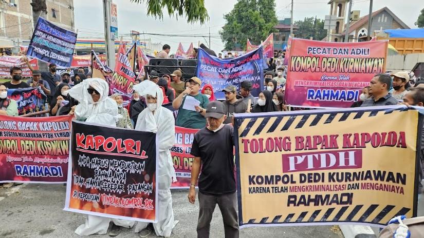 Sebelumnya, ratusan warga Kota Tanjung Balai sempat berunjukrasa di depan pintu masuk Polda Sumut, Jumat (25/7/2025) kemarin.
