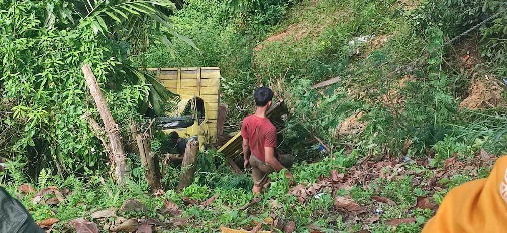Sebuah truk Colt Diesel terperosok masuk kedalam jurang sedalam 5 meter di Jalan Lintas Sidikalang - Subulussalam.