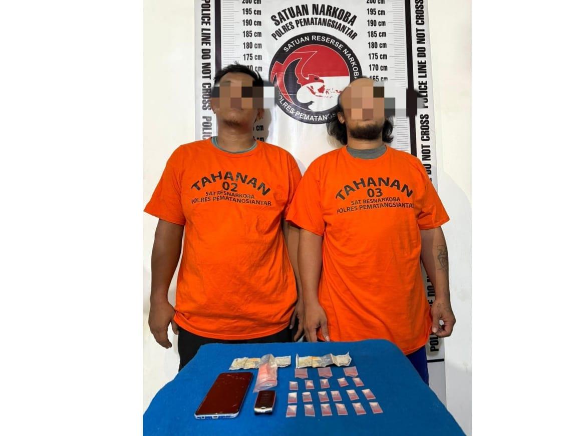 Kedua tersangka kini ditahan di Polres Pematangsiantar dan dijerat dengan Pasal 114 ayat (1) juncto Pasal 112 ayat (1) Undang-Undang Nomor 35 Tahun 2009 tentang Narkotika.(Jun-tribun-medan.com).