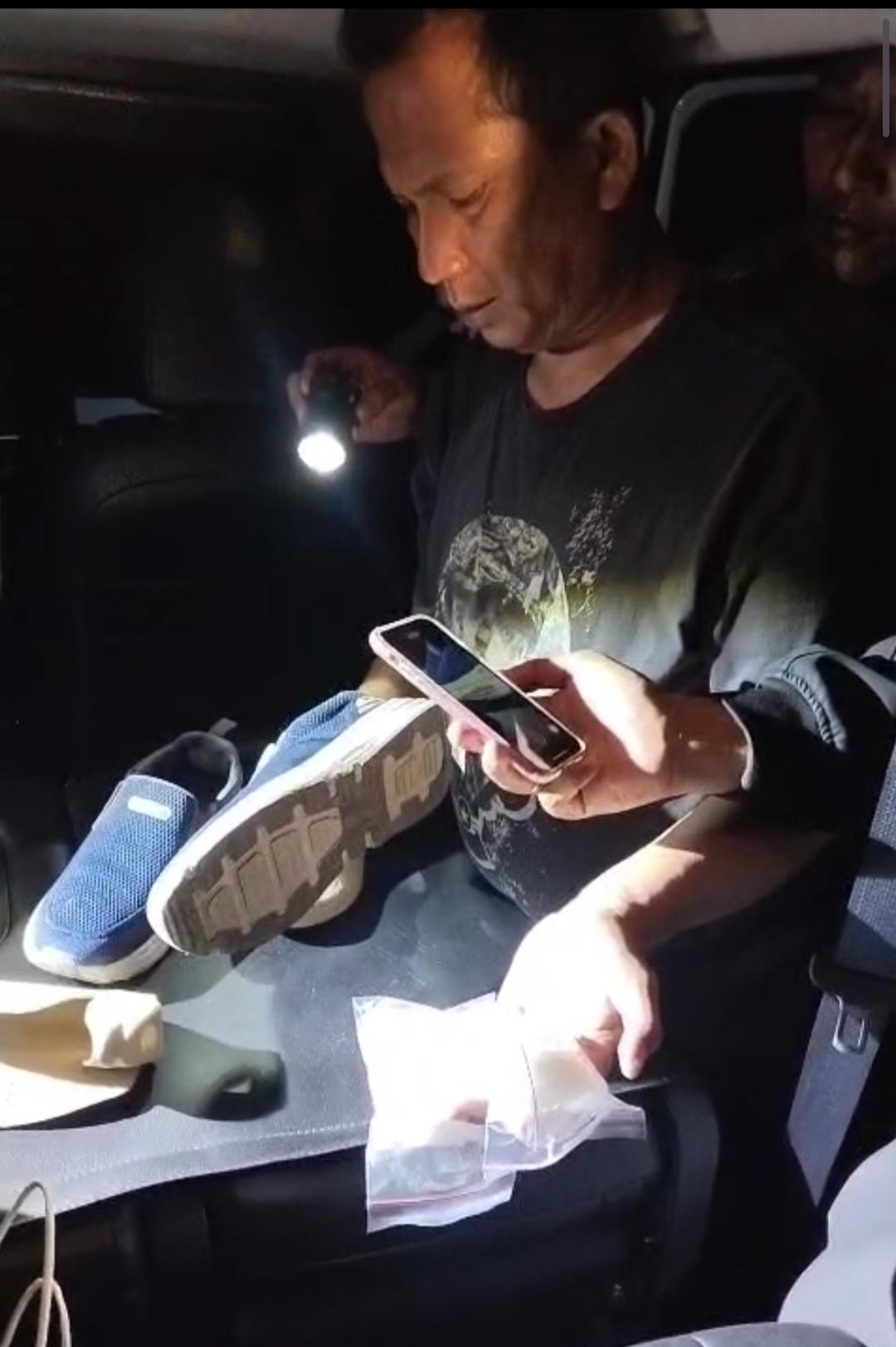 Namun, saat petugas menggeledah mobil jenis Mitsubishi Xpander milik Satria, petugas menemukan barang bukti berupa sabu seberat 200 gram yang disimpan didalam salah satu sepatu milik Satria.