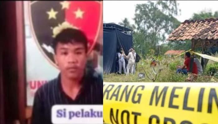 Pelaku, Feri dihadirkan di kawasan kebun karet Cikukun, Kecamatan Wanareja, Kabupaten Cilacap pada Senin (10/8/2025).