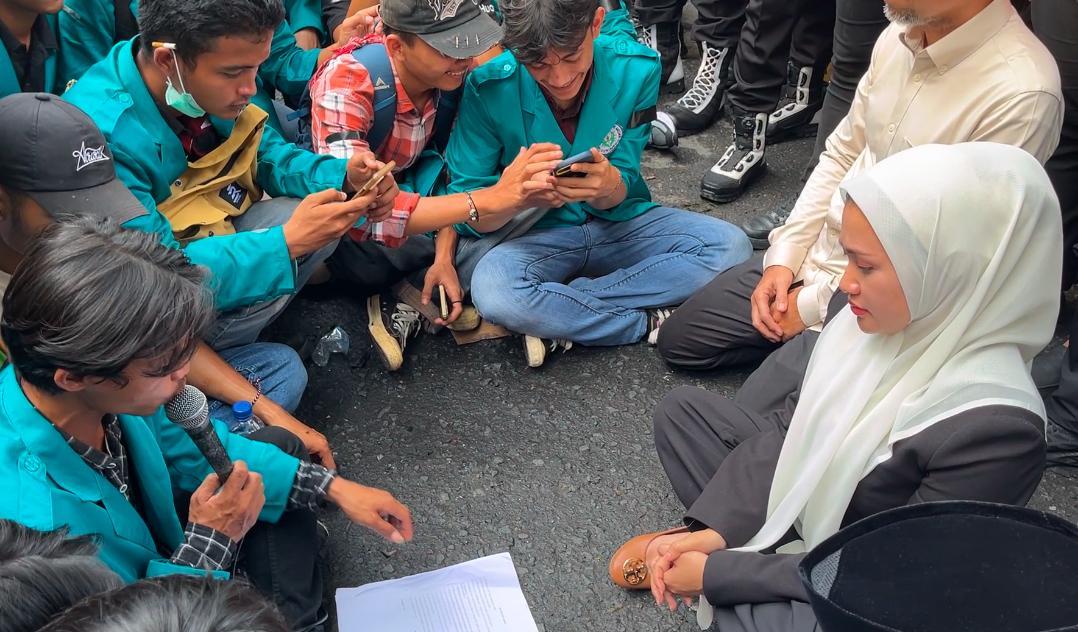 TRIBUN-MEDAN.COM,MEDAN- Ketua DPRD Sumut Erni Ariyanto Sitorus menemui massa unjuk rasa dari Mahasiswa Universitas Negeri Medan (Unimed), Selasa (2/9/2025).