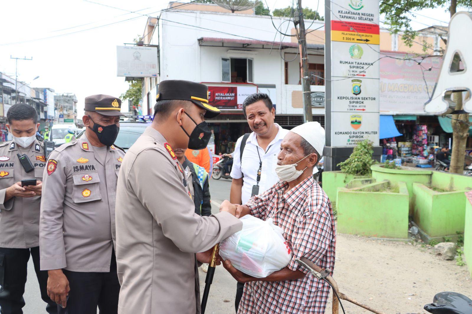 Mewujudkan sikap kepeduliannya di Jumat Barokah, Polsek SDH (Saipar Dolok Hole) Resort Tapsel membagikan sembako di Tahfidz Quran Baiturrahmi Desa