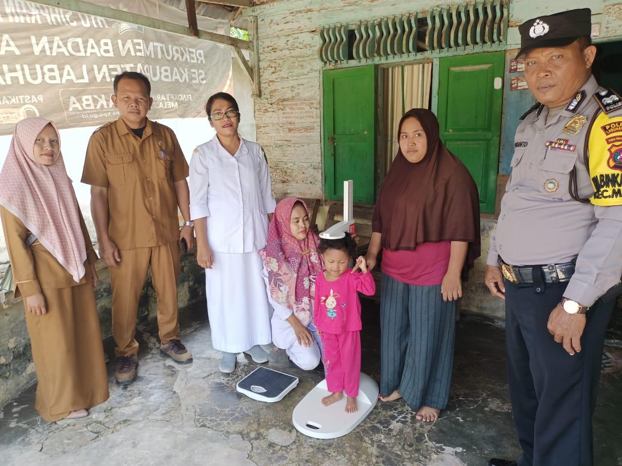 Personel Bhabinkamtibmas Polres Labuhanbatu bersama tim penanganan stunting melakukan kunjungan ke rumah-rumah warga yang anaknya terindikasi stunting