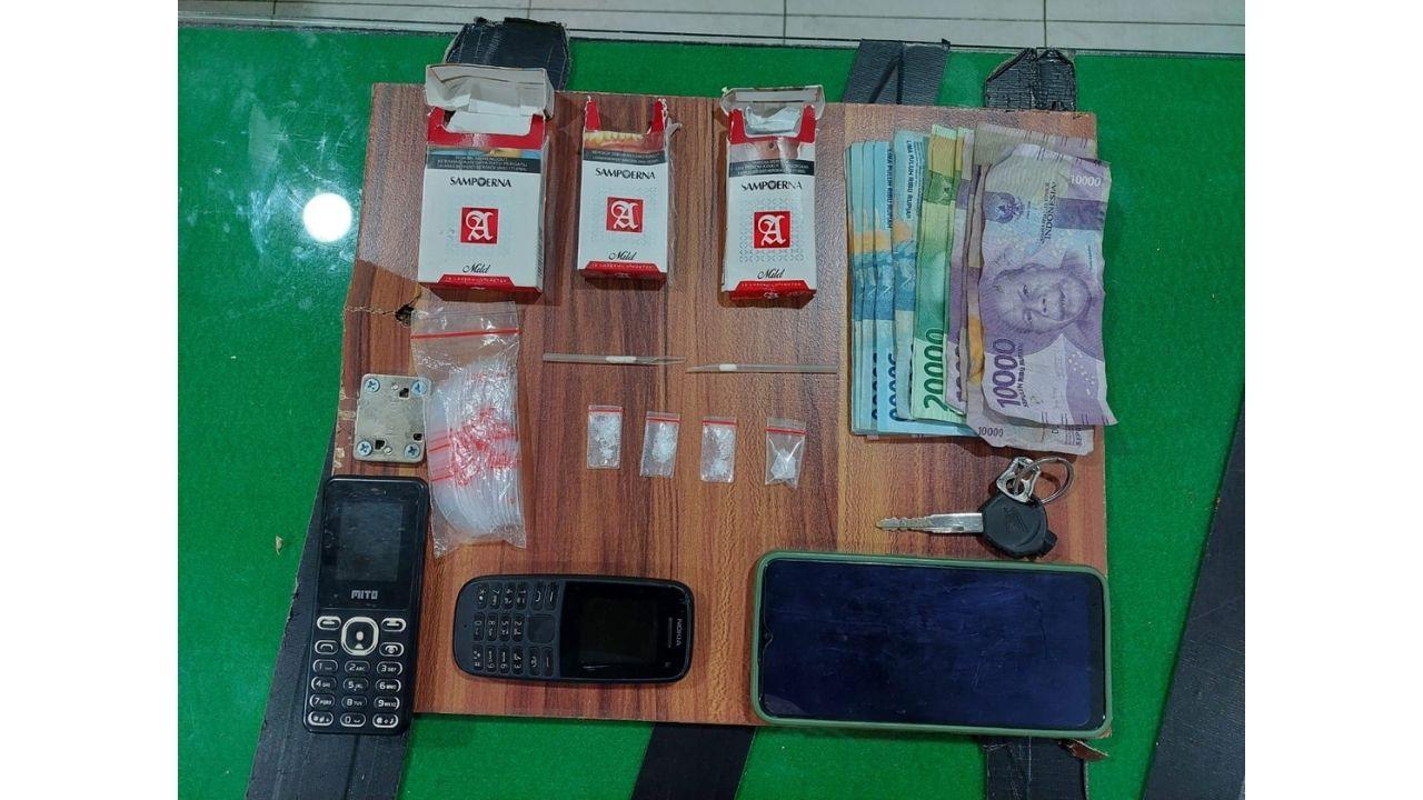 Dari pelaku diamankan barang bukti 5 bungkus plastik klip besar diduga berisikan narkotika jenis sabu seberat 4,68 gram brutto, 1 bungkus plastik
