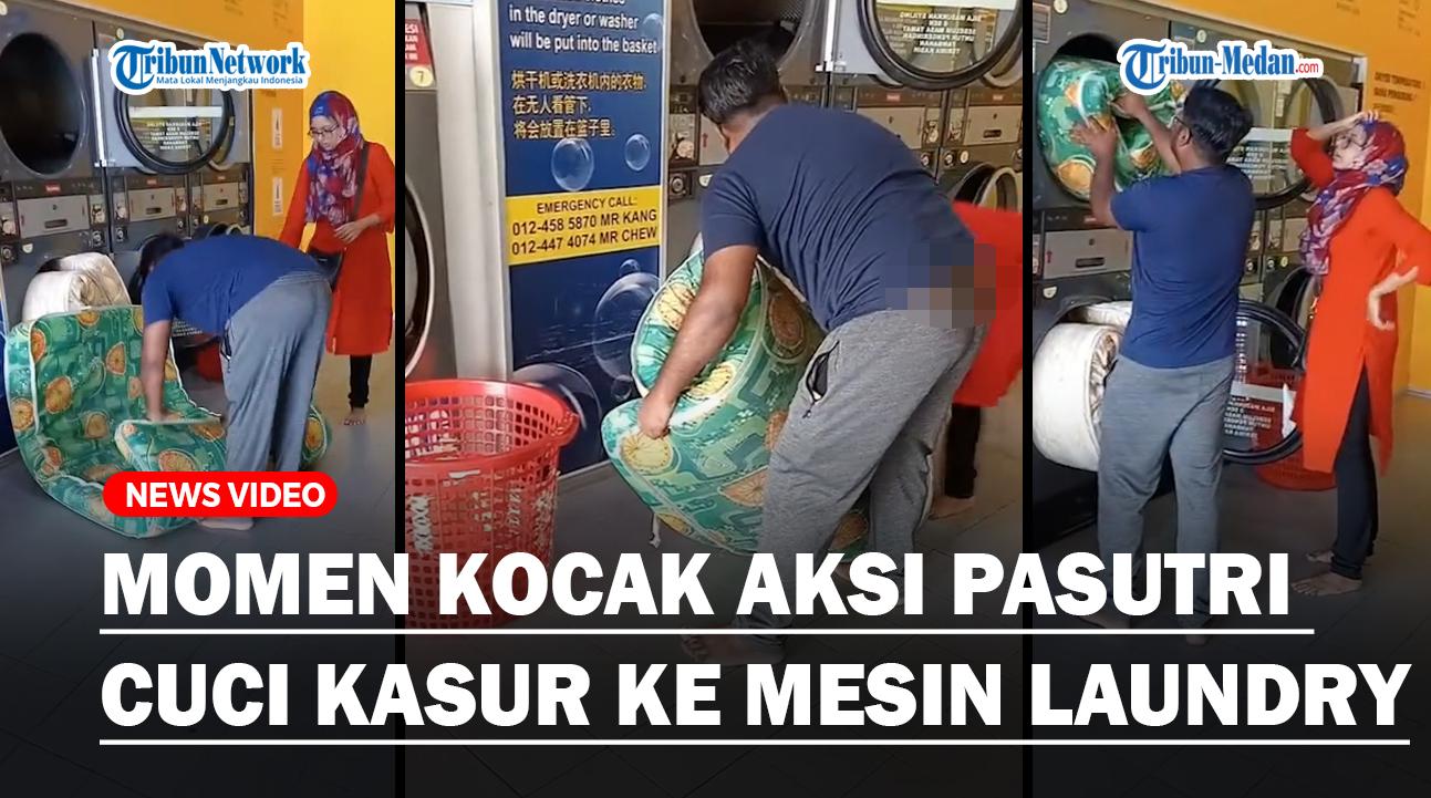 Momen saat pasangan suami istri mencuci dan memasikkan kasur ke dalam mesin laundry self service viral di media sosial.