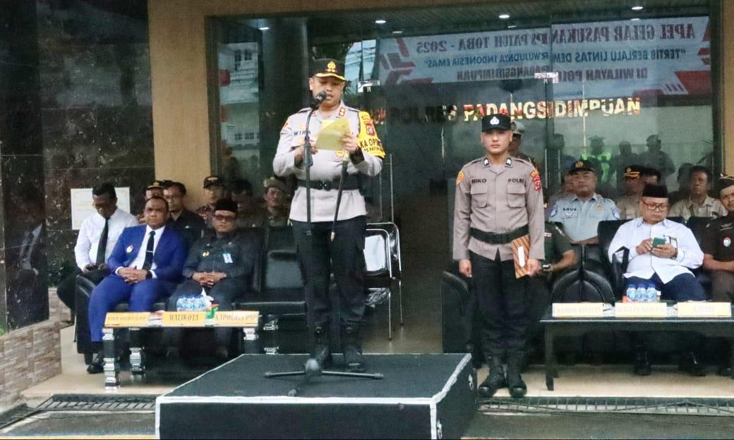 Apel Gelar Pasukan Operasi Patuh Toba 2025 digelar di Lapangan Apel Polres Padangsidimpuan, Senin (14/7/2025).