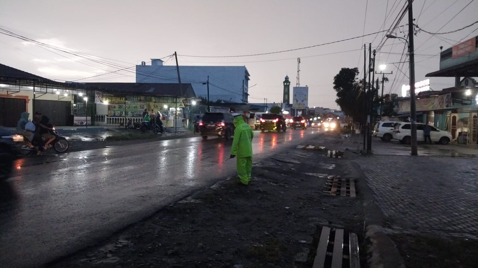 Hujan-hujanan, Sat Lantas Polres Simalungun Tetap Pastikan Jalur Lalin Pengemudi Aman