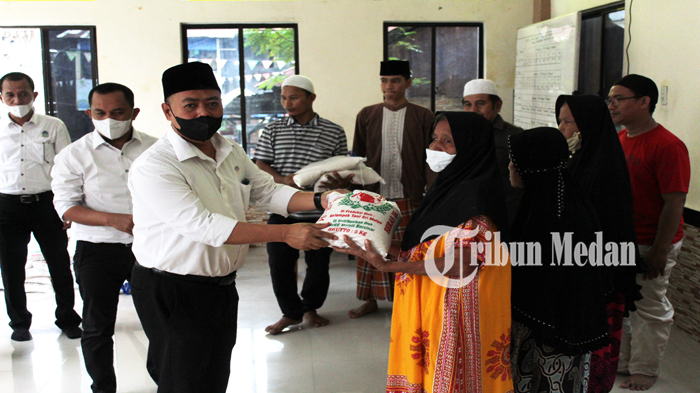 Koperasi Mandiri Abadi Sejahtera PDAM Tirtanadi Sumut bagikan sembako kepada 99 janda dan fakir miskin di Masjid Jamik